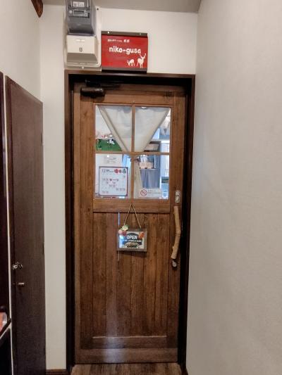 近鉄奈良駅から南へ徒歩10分ほどの狭い路地にあります。近鉄奈良駅を出て、東向商店街を通り抜け、三条通りへ出たらあの高速餅つきで有名は中谷堂を右折し、餅飯殿センター街を南下。柿ならが見えたらその丁字路を左折。左が駐車場のところの右側ににこぐささんが入った建物があり、にこぐささんはその2階になります。