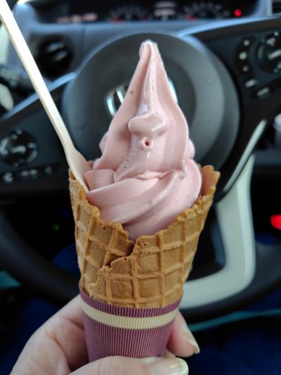 母はいちごサンデーにしましたが、こちらはサンデーですのでソフトクリームです。- 旅行時期