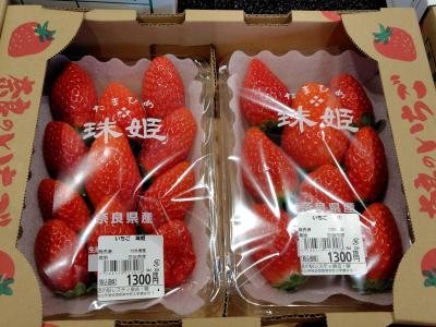 イチゴのシーズンになると各種いちごが並びます。午前中に行けばいいものを買うことが出来ると思いますが(粒の大きさで値段が違います)、午後から行っても残っています。
