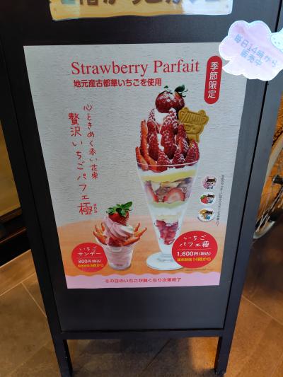 いちごのシーズンになると、古都華を使ったいちごパフェ極の販売が始まります。1600円ですが過去のクチコミをみているとかなり値上げされてしまっているのが残念です。このご時世仕方ないですね。。。