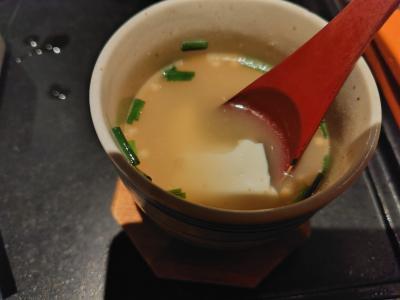 めんたい吸いは器の底に蒸したての豆腐が鎮座し、焼いた明太子がほろほろと表面で浮いています。こちらも特筆する感じもなく。