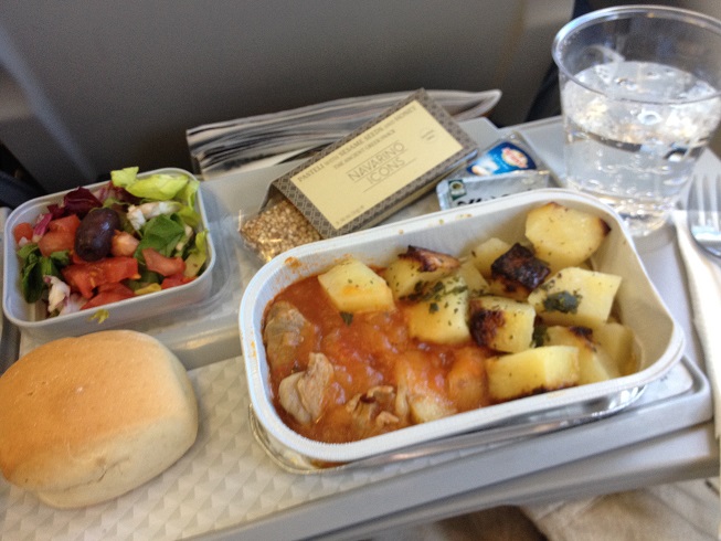 スターアライアンスのマイルを利用したかったので、ロンドン(LHR)・アテネ(ATH)間の中距離と、アテネ・サントリーニ島間の近距離を利用しました。中距離でサーブされた食事は美味しかったです。他のヨーロッパ線ではあまりない手拭用のウェットティッシュも有難いサービス。ロンドン・アテネ間は3時間半ほどのフライドですが、ミールの他に離陸前にはキャンディー、着陸前にはまた袋入りのパンが配られました。ドリンクも無料の種類は多めだと思います。
