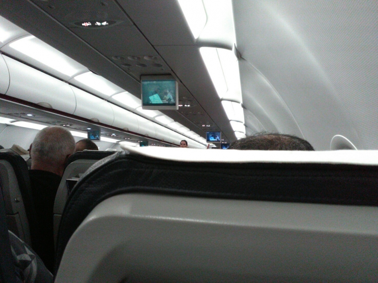 私のチケットはソフィアからアテネまで28.5ユーロとお手ごろでした。預け入れ荷物は含まれないものの、搭乗時はバゲットサンドとギリシャのクリスマスのお菓子、飲み物という軽食が出ました。モニターは上から出てきてどのあたりを飛んでいるのか確認できました。CAさんの制服と機体の塗装がシックな雰囲気を醸し出しており、なんとも優雅な気分になりました。