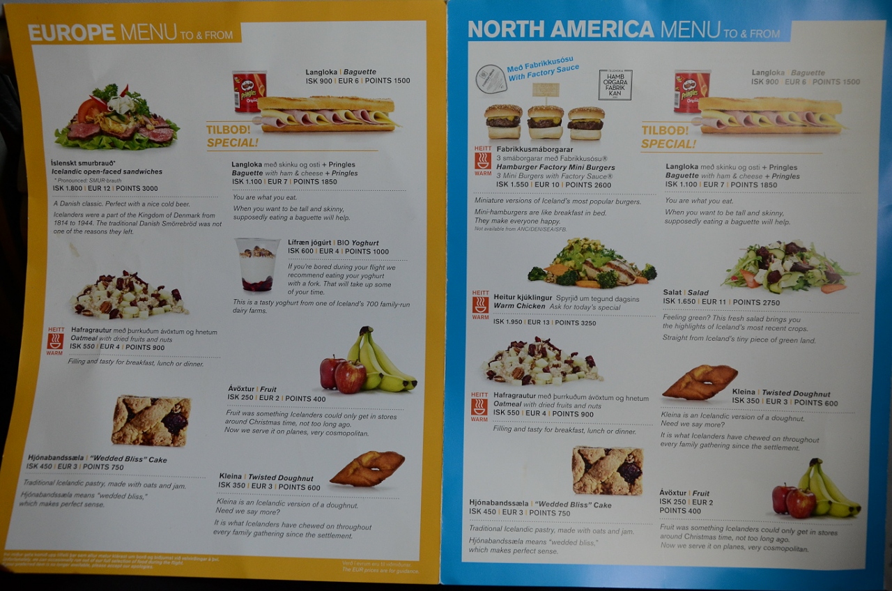 画像に出したメニューの左側がヨーロッパ路線での食事、右側がアメリカ路線での食事。