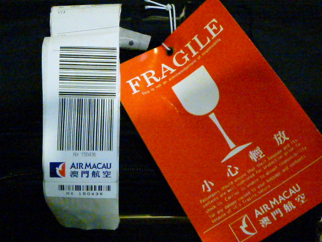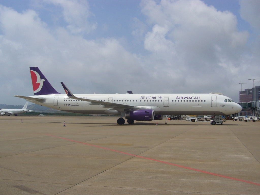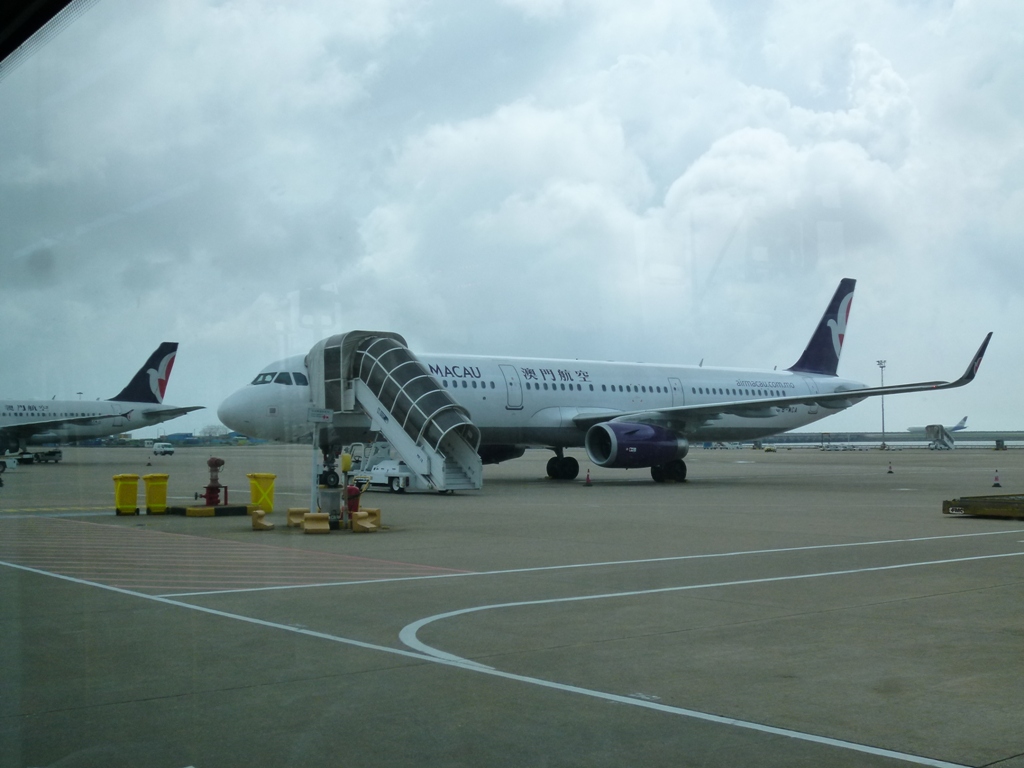 白い機体に澳門空港の文字、尾翼にはマカオカラーの紫と白と赤のワンポイントが鳥に見えるのは私だけでしょうか。