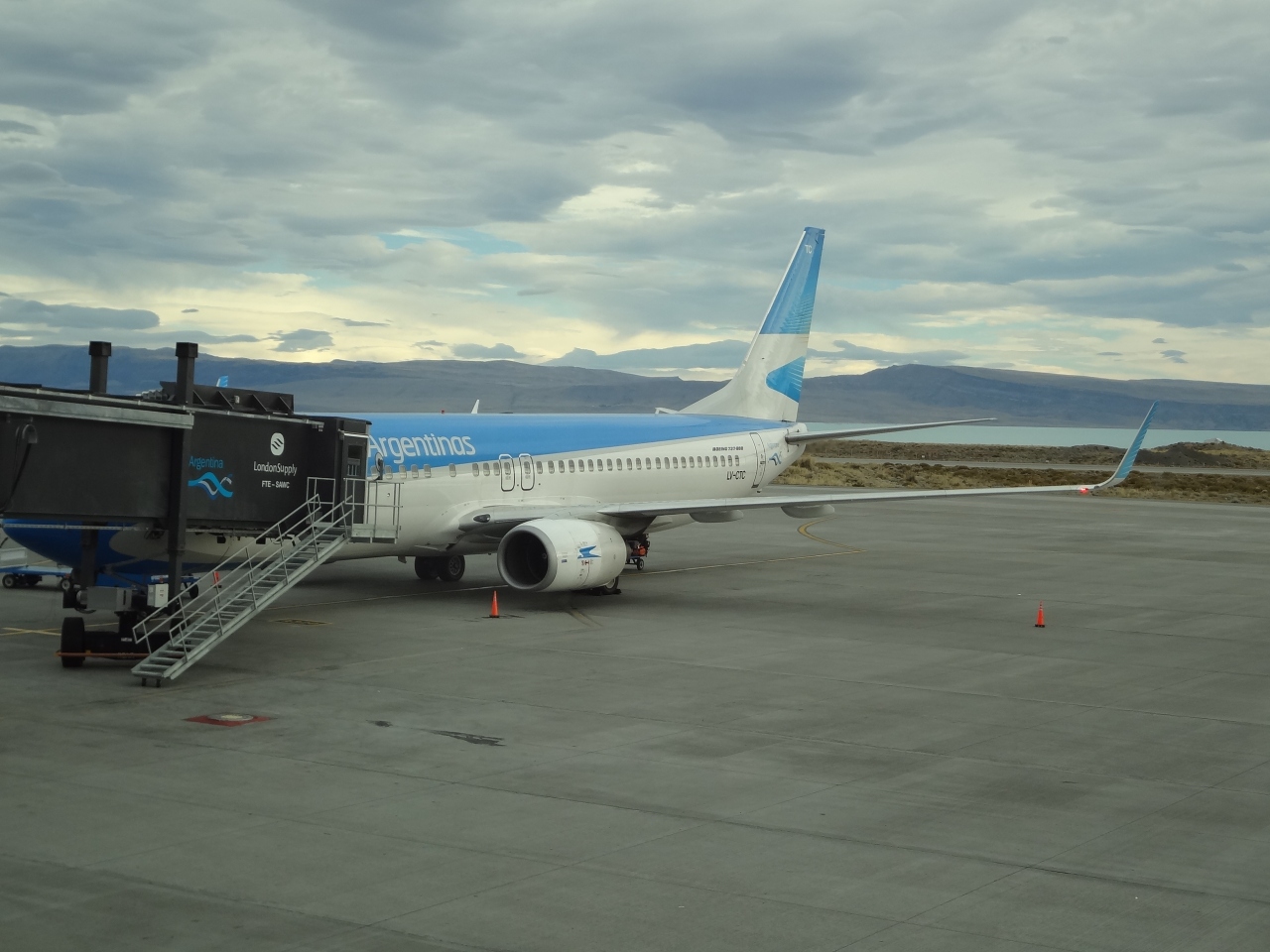 ウシュアイアからカラファテまでのフライトは、出発が1時間近く遅れたにも関わらず、何のアナウンスもなしでしたが、今回はオンタイムのフライトでした。