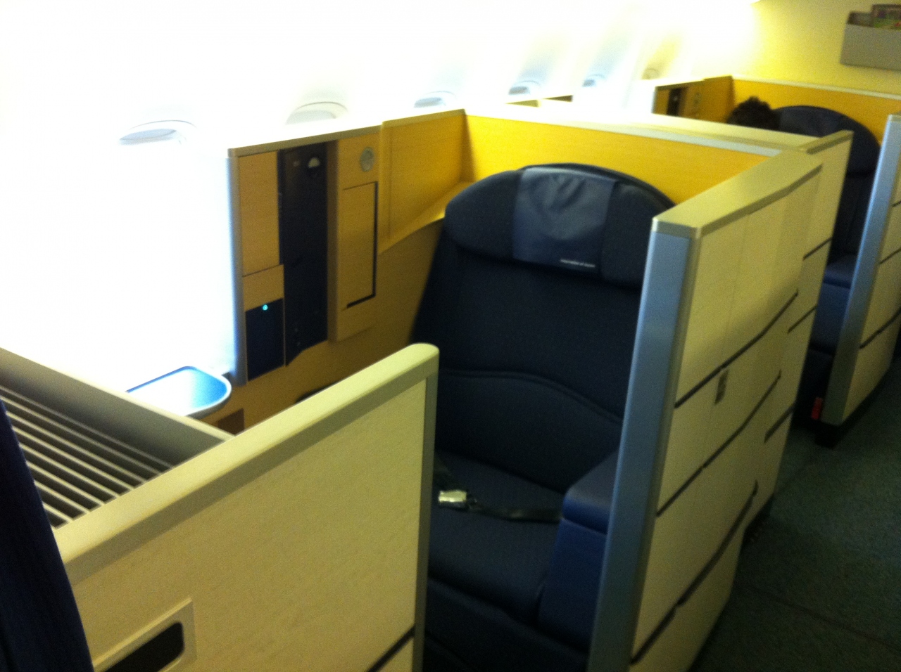 今回は欧米線で使われているB777-300ERが偶々上海便で使われており狙って予約を入れた。マイレージ上級会員の場合、ビジネスで予約して当日ファーストクラスのシートに空きが有るとファーストクラスのシートが使える。これは半個室タイプのフルフラットシートで、ANAでは最新のファーストシートだ。これがたったの20,000マイルで使えるのだからラッキーでした。