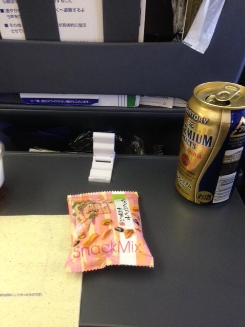 日本のビール、プレミアムモルツを飲むことができます。ワインも小さなペットボトルで赤、白どちらも楽しむことができます。