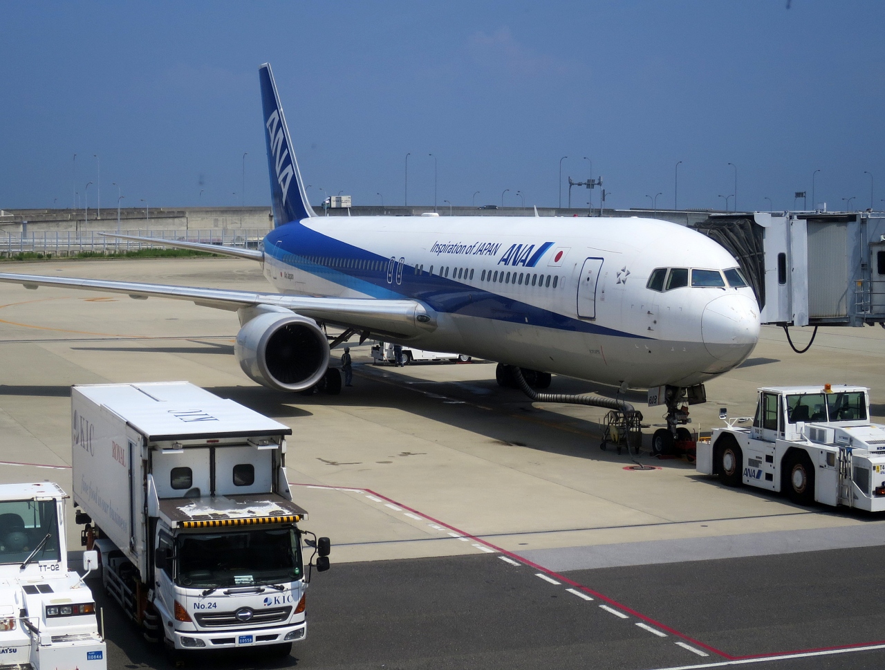 世界の潮流としては、大変高価で搭乗率の高くないファーストクラスを廃止し、利益率の高いビジネスクラスのシートやサービスを向上させて、顧客獲得を目指すようになっています。とりわけアジア諸国、なかでも日本とビジネス・観光両面で強い結びつきのある香港・タイ・シンガポール・マレーシアなどの航空会社は、日本就航路線に最新機材を投入するなどし、顧客獲得に懸命です。しかしANAでは、今もそれらの国々に就航する中距離線には、中型機のB767-300を投入していることが多いです。たしかに旅客機としては安全性や操縦性に定評の高い機材として有名な機材ではありますが、利用客の立場からするとキャビンは手狭ですし、設置されたシートは、もはや先ほど記したとうな国々では地方路線でしか見かけない旧型のものですから、ちょっとがっかりします。食事も、味は良いのですが、見た目が安っぽく、「採算重視しています」というスタンスが前面に出ていますし、搭乗直後のウェルカムドリンクサービスもなく、上級クラス搭乗のワクワク感がありません。そうしたマイナスを補っているのが、世界一とも思われる丁寧な接客サービスです。JALの接客も丁寧ではありますが、あたかも気難しい社長を相手にする慎重な雰囲気があるのに対して、ANAの接客は丁寧でありながらも明るく元気な雰囲気があって、私のメンタリティー合っていると思います。、