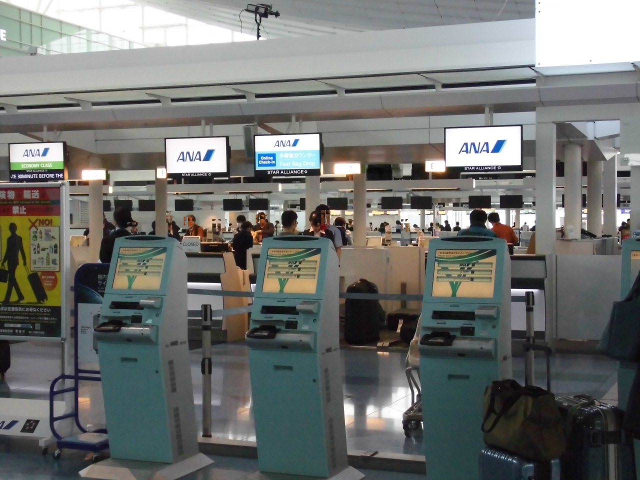 まづは 羽田空港の自動チェックイン機で搭乗券を発券後
