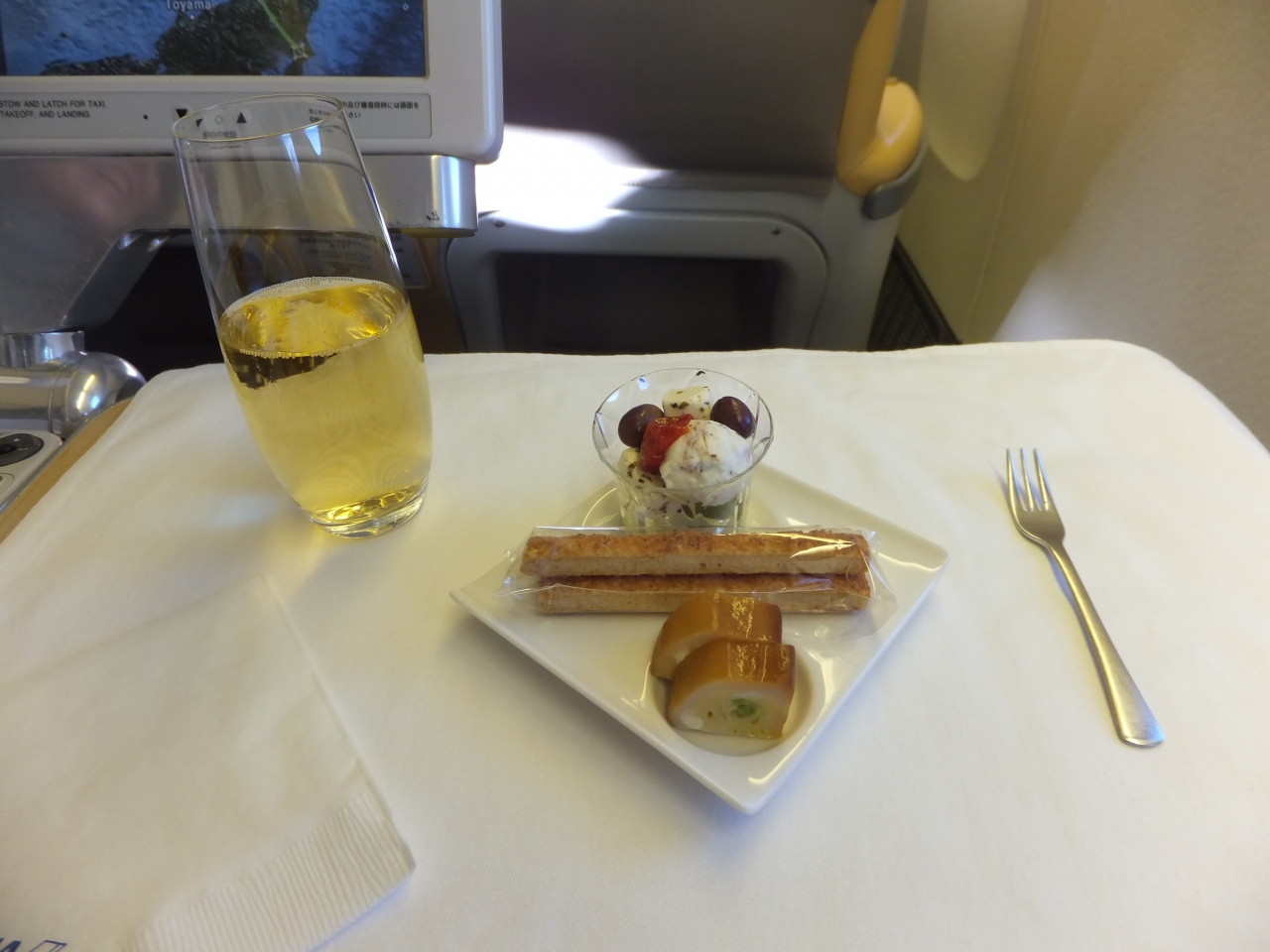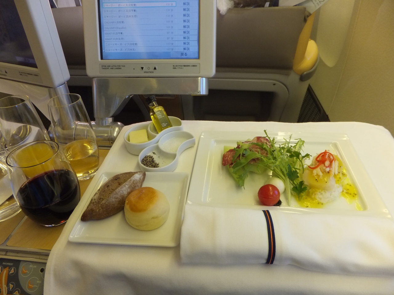 食事は器も含めて機内でここまでやるのかと思うくらいがんばってますね。日本の会社にはわがまま放題なお客を相手にしてきた成果でしょうか。