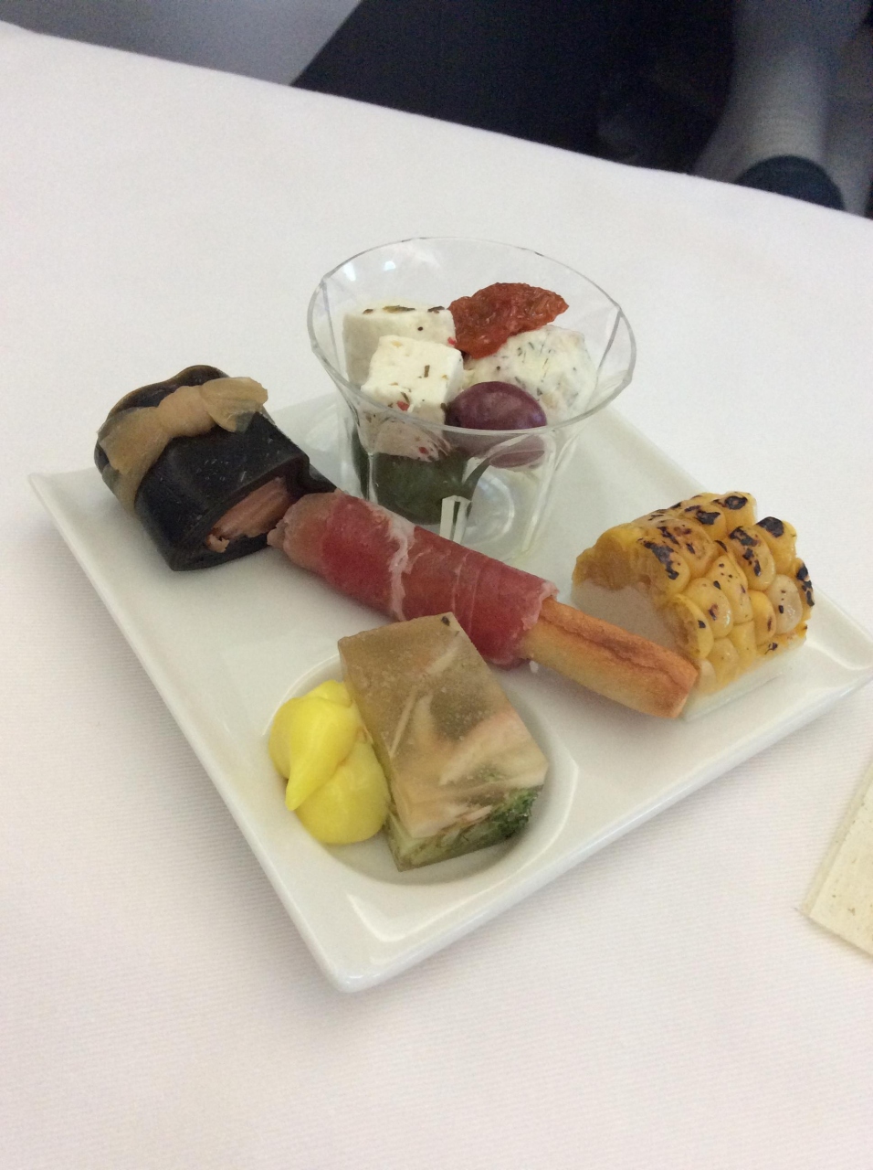 到着前機内食は現地16時頃に終わりますので、眠る前は軽い食事にして、その後は