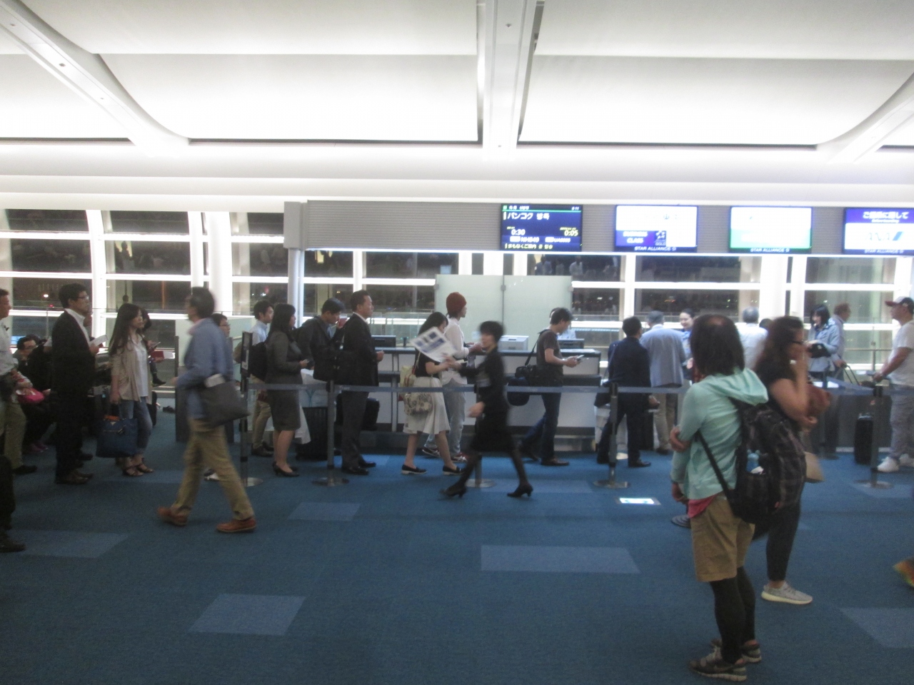 6月は閑散期であるにもかかわらず、ニーズが高い路線であることから3人席を3人で座るというほぼ満席状態でした。エコノミー席であっても最近は幅が広いタイプの椅子で窮屈に感じません。1月、2月に劇場で見た映画をシアターで見ているかのように移動できました。