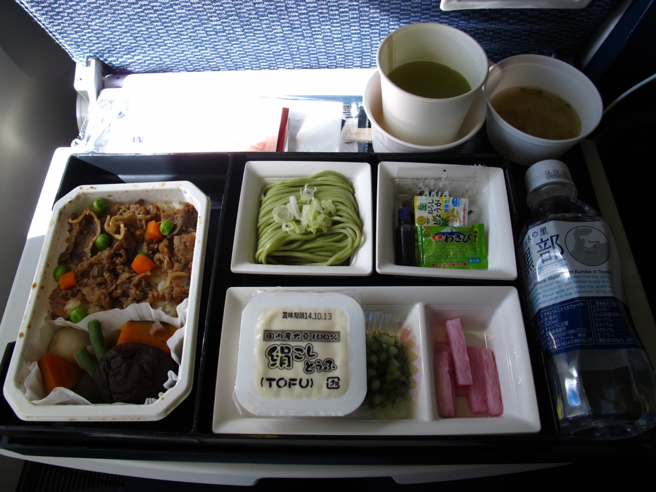結構な頻度でCAさんが飲み物を持ってまわっていてくれて、本当はお酒を飲みたかったけど、体調がイマイチの為、毎回温かいお茶をお願いしてました。