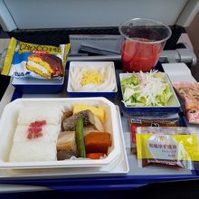 2時間のフライトですが、ドリンク&朝食が出ました。鮭弁当です。