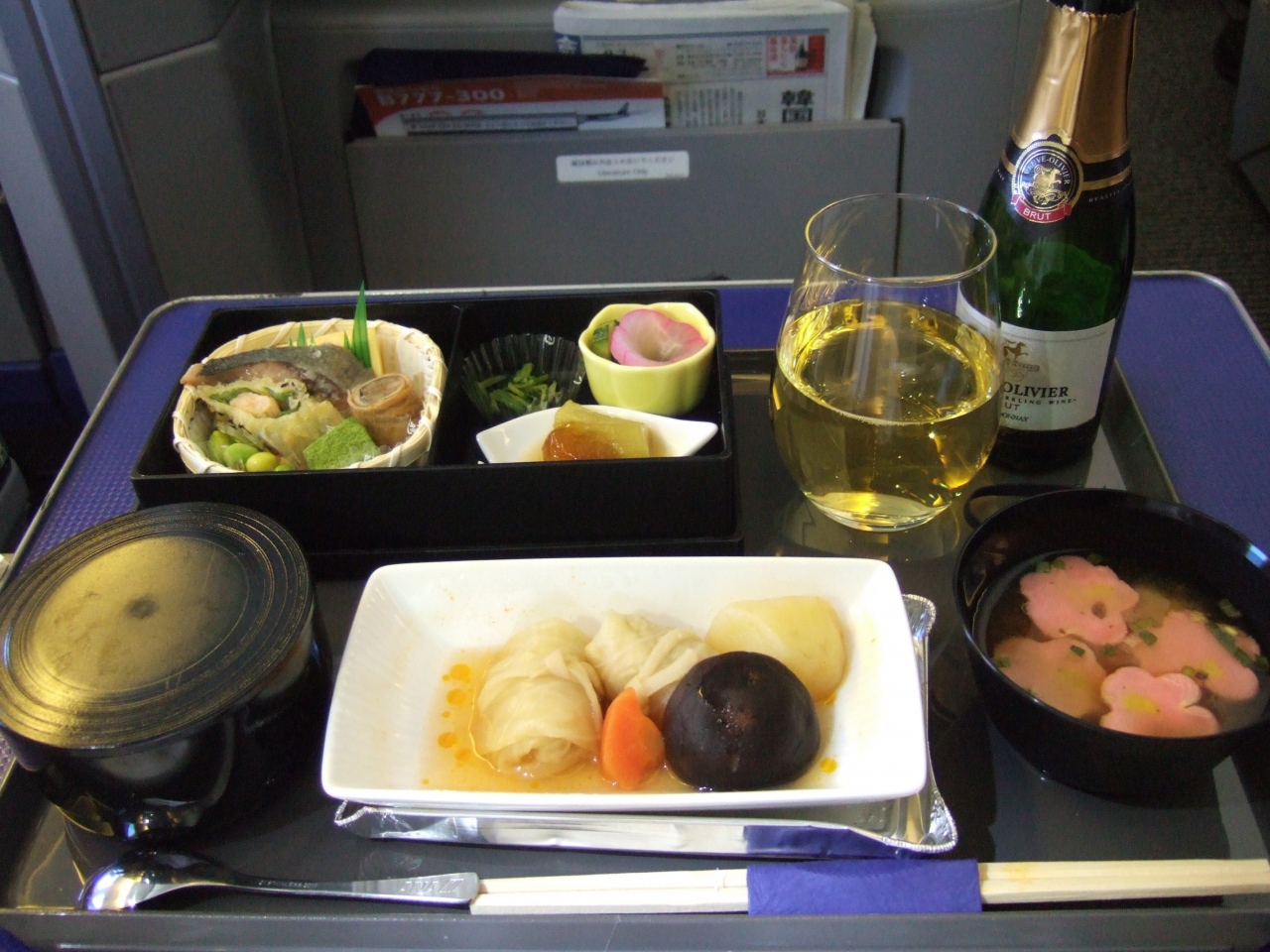 食事は弁当箱ではなく、ちゃんとした器で供されましたが、飲み物は何をオーダーしても、ラウンジと同じグラスです。