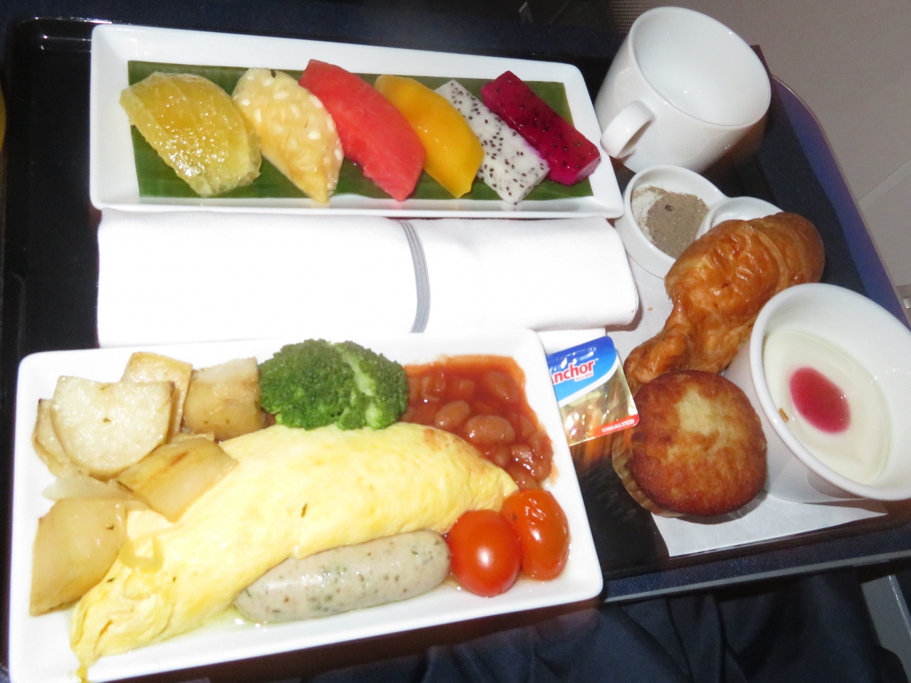夏休みのお盆時期、特典航空券の空席待ちでシンガポールを希望してたのですが、期待むなしく待ち期限が来てしまい、今日で空席待ちキャンセル…という日に急遽マイレージクラブに電話、とにかく確定できる路線ならどこでもよいのでお願いします…と言って、唯一とれた場所がプノンペンでした。一人当たり税金等で15150円、電話応対でしたのでプラス2160円、合計消費税込みで一人17310円掛かりましたが、無事ビジネスクラス3枚ゲットできたので文句言えません。中距離と短距離の間みたいな感じで、片道約6時間強の搭乗時間でした。初めての路線だったのですが期待して乗り込みました。日系航空会社ビジネスクラスの軽食サービスというのをスッゴク楽しみにしてたのですが…路線のせいだったのか、全く期待外れでちょっとがっかりしました。座席もゆったり出来たのですが、帰りは足がパンパンに浮腫んでしまいました。…しかしながらさすが日系航空会社、乗ったとたんにカンボジアなのに日本にいるような安心感、トイレも清潔でウオシュレット、機内プログラムはすべて日本語吹き替えや日本語訳が付いていて、新作・旧作・ハリウッド映画や韓国ドラマ等見放題!!外国の航空会社ではこうは行きません!!!本数はあっても楽しめるのはごくわずか…がほとんど。次回は長距離路線で乗ってみたい…贅沢なのはわかってますが…そう思いました。