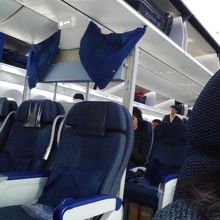 プレミアムエコノミーは、ビジネスクラスとエコノミーの間のたった2列しかありません。 1列目は足元が広くていいのですが、後ろにいる人によってはシートを倒しにくいです。 今回は後ろに大柄な人がいたせいでシートを倒せずに 窮屈な思いをしました。シートを倒したい人は2列目の方がいいかもしれません。