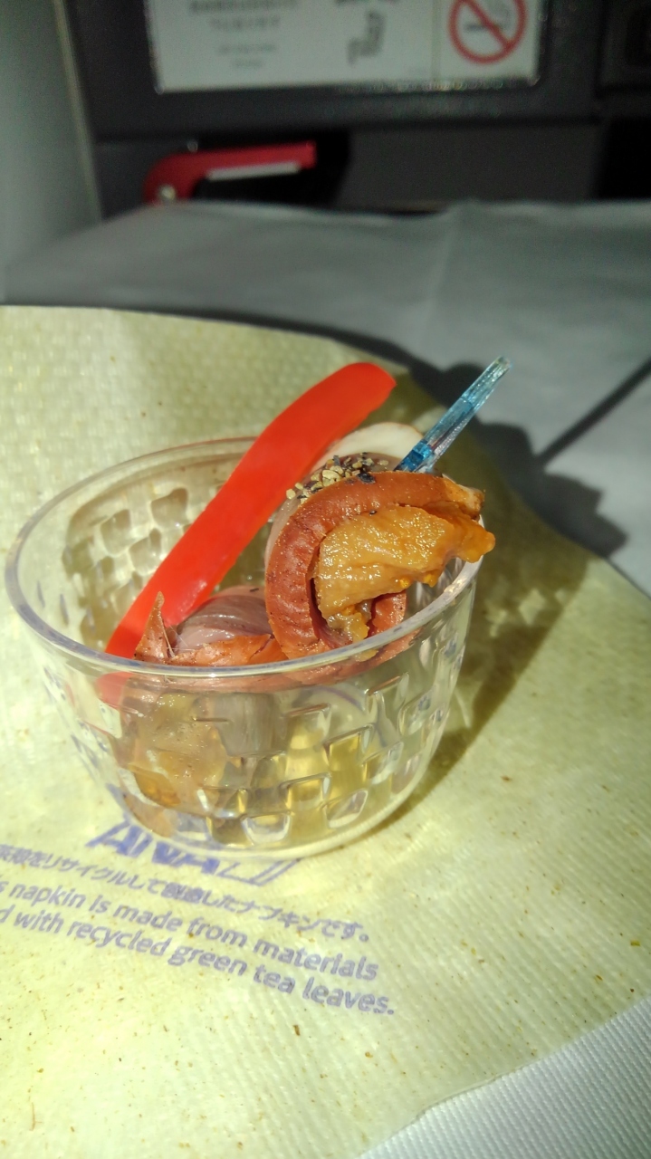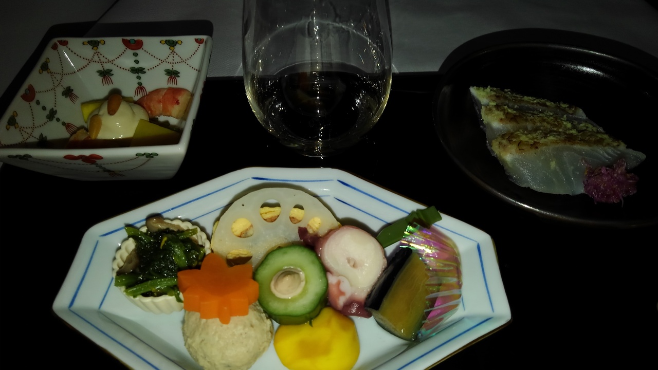 土曜日出発便。ビジネスクラスは空いてました。和食を選択しましたが、見た目も味も素晴らしいものでした。シートはフラット、 すべての席が通路アクセスあります。 アジア路線のためかアメニティバッグは提供されませんでした