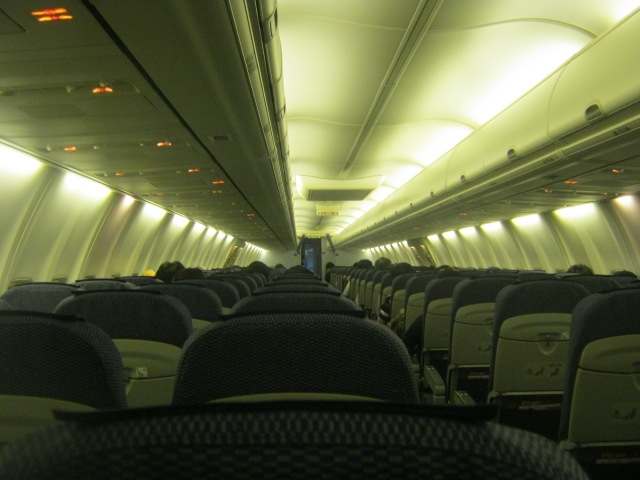 その後は約5時間の沖縄観光を終えてOKA→NGOの最終便に搭乗します。この区間はもう少し早い時間帯にもフライトがあった関係で、遅い便への搭乗者は少なくて、3-3のナローボディ機材でしたが、後方の3席を独り占めしてゆっくりと過ごすことが出来ました。