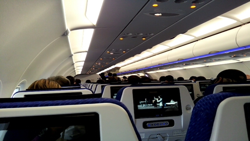 翌日台風が関東地方に接近するという状況だったため機内は混んでいました。