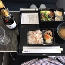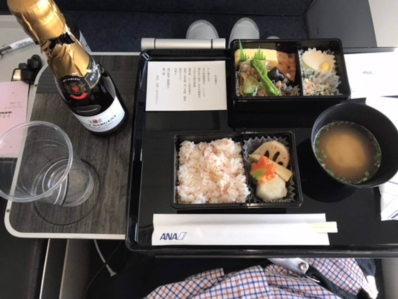 スパークリングワインをいただいて、お弁当をいただきました。上品な味(と、量)でした。