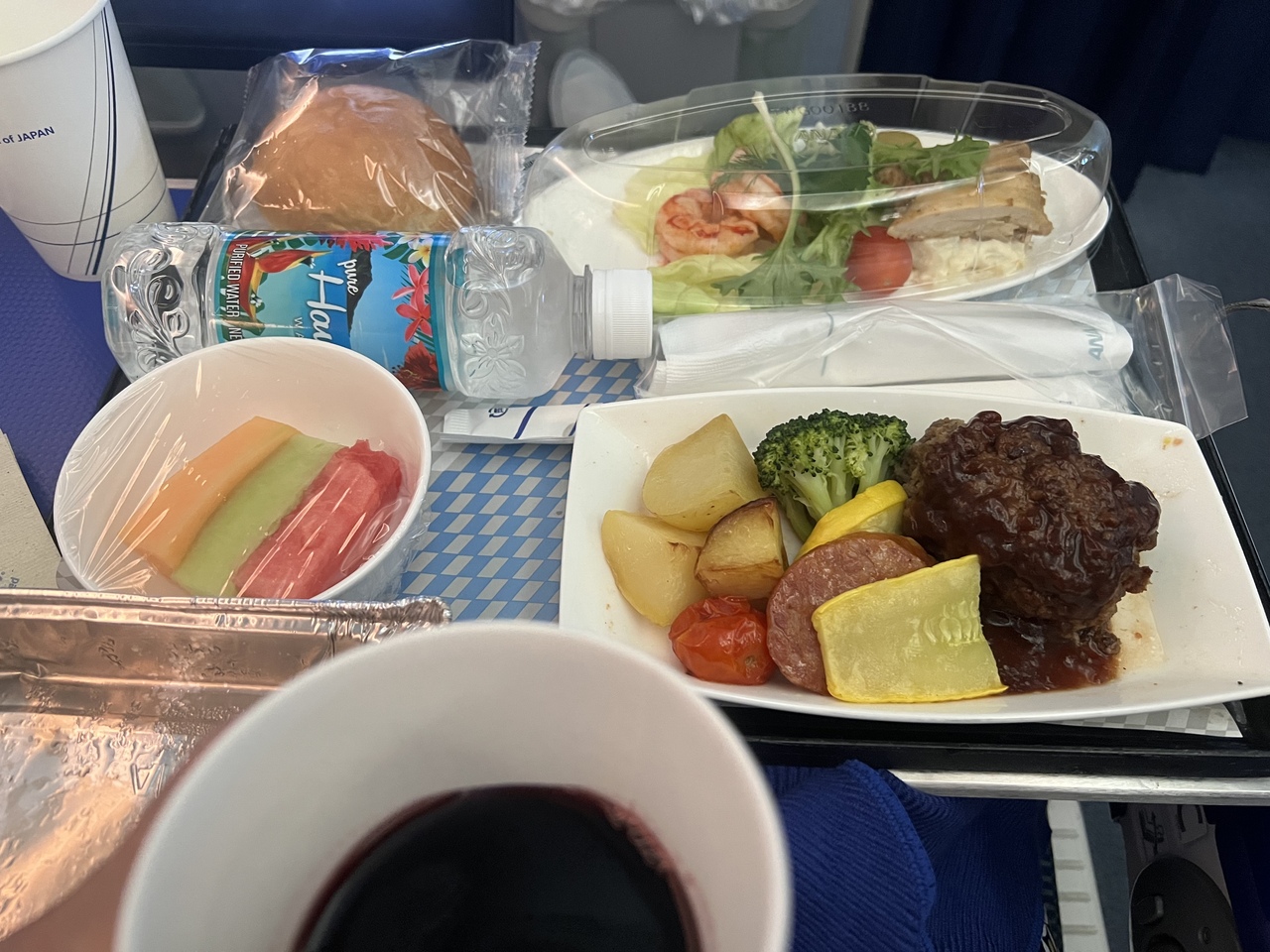 ANAのプレミアムエコノミーは初めてだったのですが、空港ラウンジも使え機内食も無料で「特別食」リクエスト可能