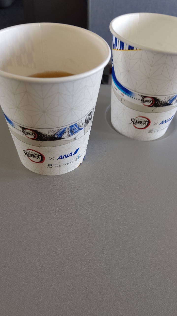 機内飲み物カップが鬼滅でしたー!