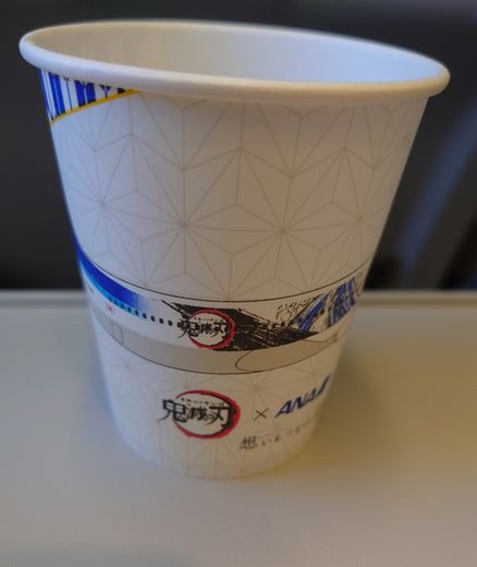 特典航空券を利用して羽田空港と新千歳空港間を利用しました。全国旅行支援キャンペーンも始まり旅行客も多くほぼ満席でした。搭乗が遅くなると荷物を入れるのにも苦労しますが、CAさんが即対応してくれました。機内提供の飲み物のカップが「鬼滅の刃」でした。