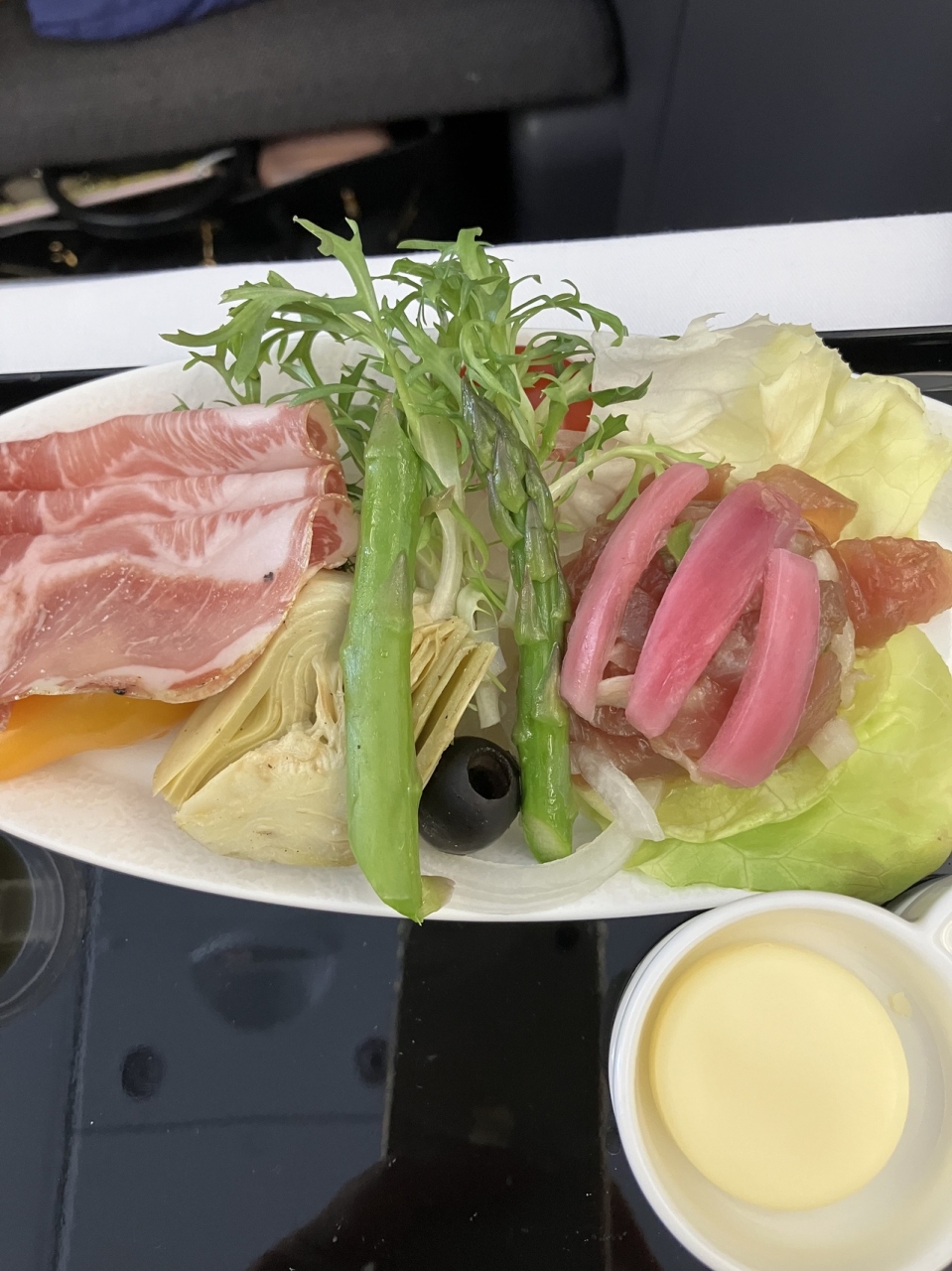 いただきました。席も広くハワイに行く便では遅い出発のため、映画もメイン食事も無しで爆睡してしまったので帰りは楽しむつもりで映画も最新作が多くて堪能し