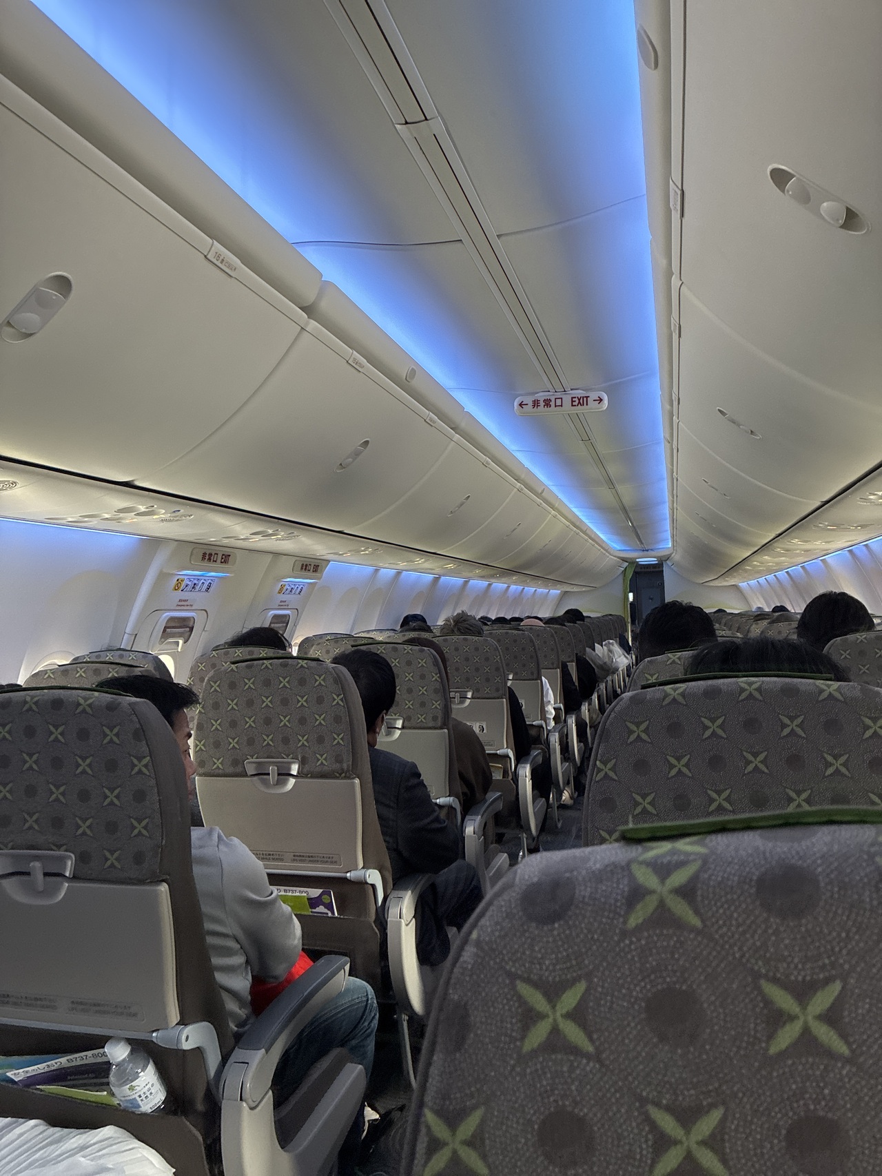 金曜朝の便。機内はほぼ満席。外国人は数名いるのみで、基本的にはシニア層の日本人旅行者が多い印象。