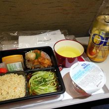 機内食は美味しい。夕方出発便なので茶そば(冷やし)の量とかがちょうどいい。