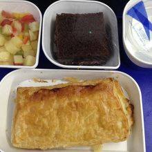 機内食は、軽食でチキンパイや果物などがでました。このチキンパイが想像より美味しかった☆温かかったら、もっと美味しかったかと思います。