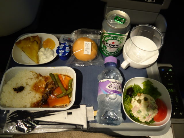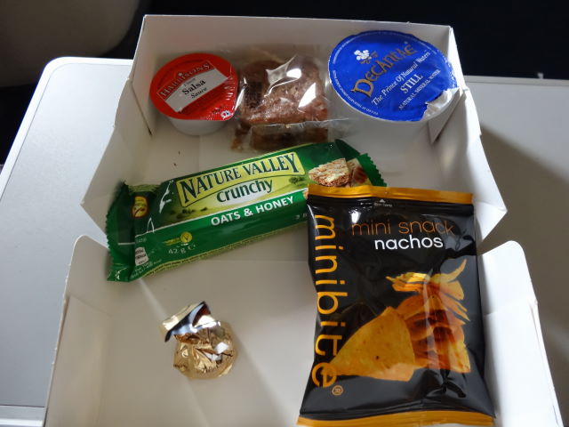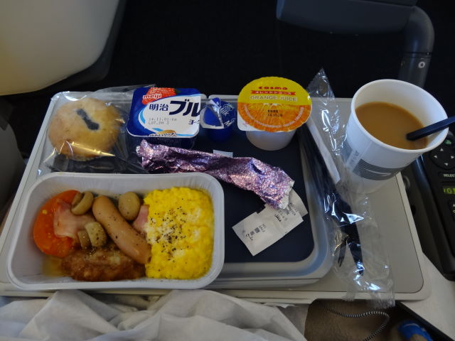 離陸後しばらくして日本時間の朝食・軽食・ロンドン時間、着陸前の昼食の順。