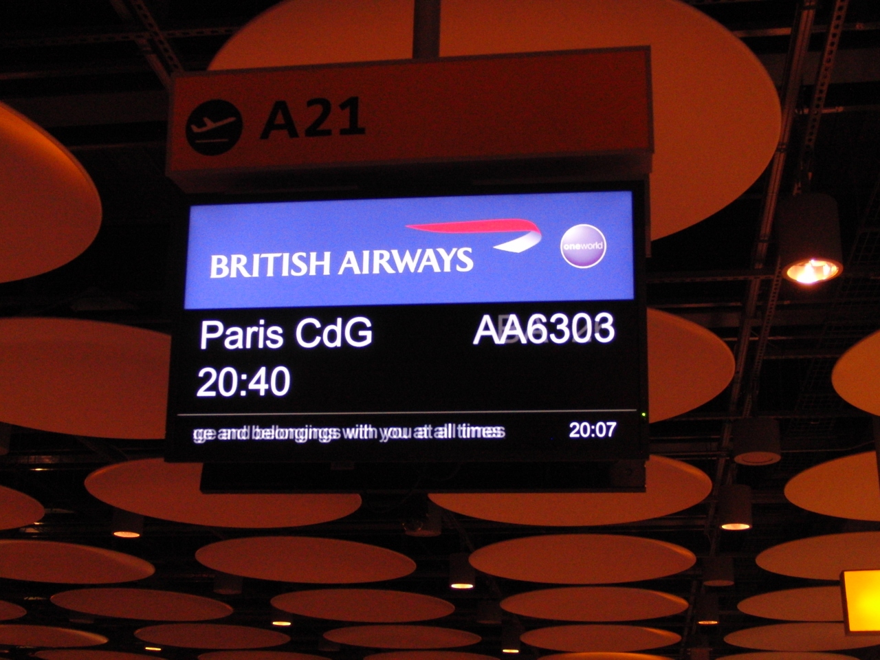 パリからロンドンへはユーロスターで行き、ロンドンからパリヘはブリティッシュエアウェイズを使いました。距離も短いので日本の国内便と同じ規格のもので狭かったですが、内装などなども綺麗で快適なフライトでした。