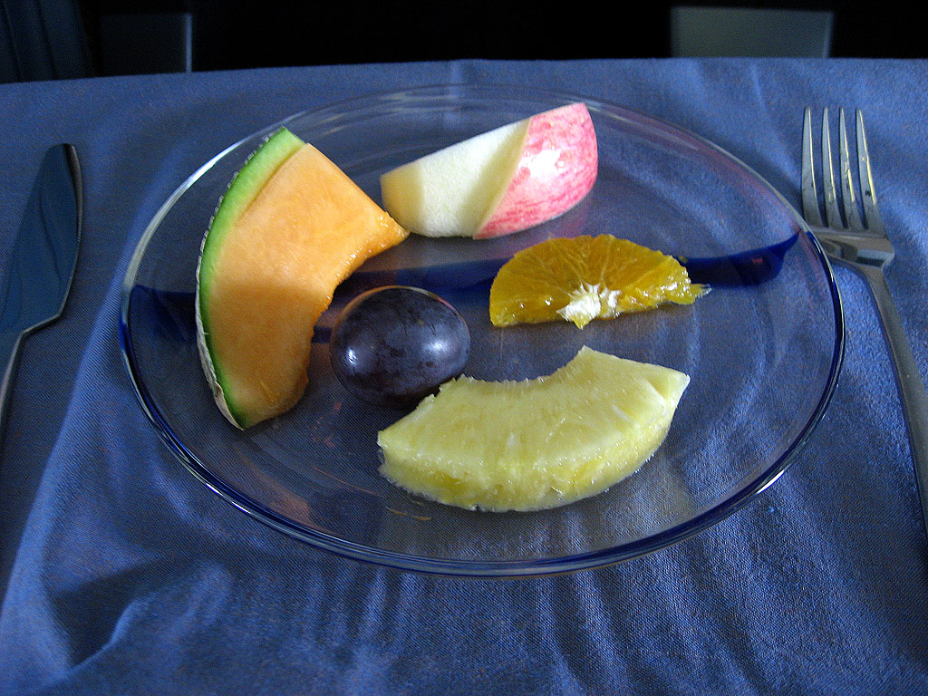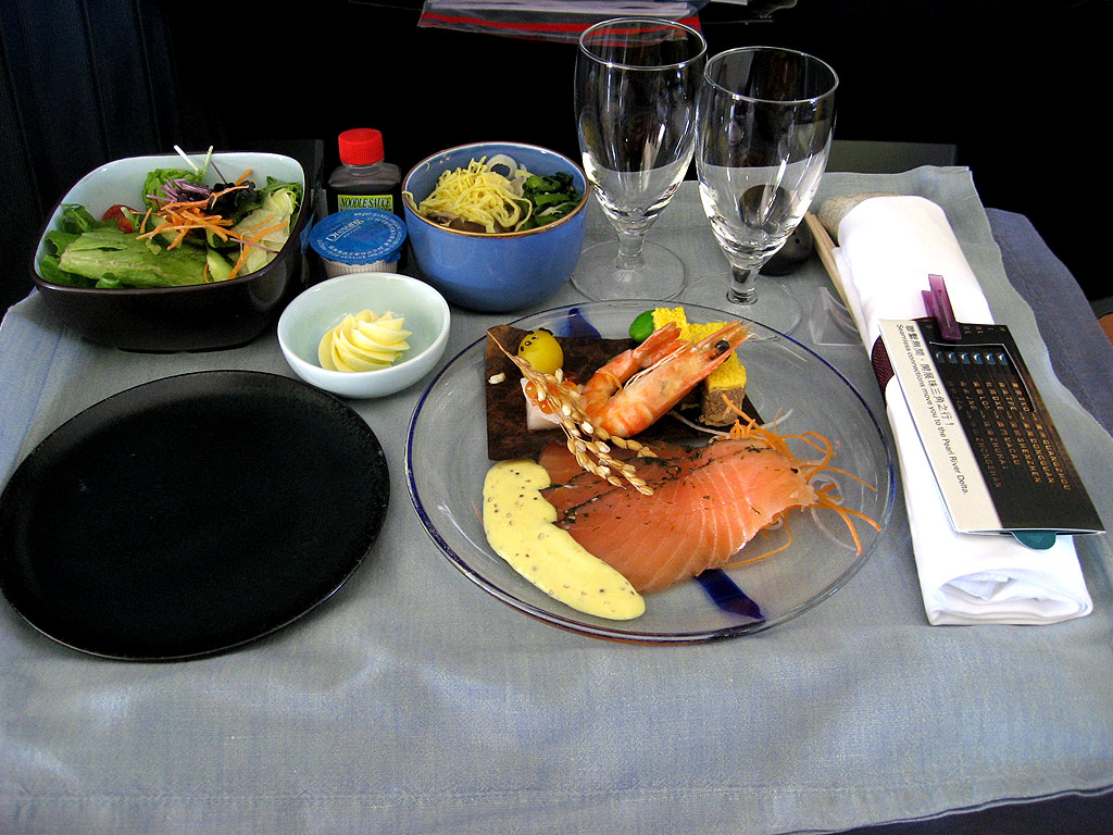 機内食はガラス製の器を使うなど、見た目も・味も上質で空の旅を豪華に演出してくれました。