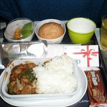 機内食はおいしくはないものの、まずくもなかったです。