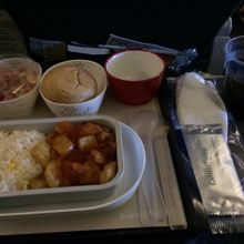 前回がビジネスだっただけに、シートも機内食も・・・ですね><