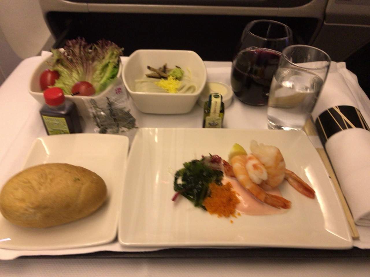 確かに朝食のオムレツはYで出ても違和感なさすぎる・・・なひどいクオリティ(しっかりしろ、成田のケータリング会社)だが、この夕食は多少はましかな?