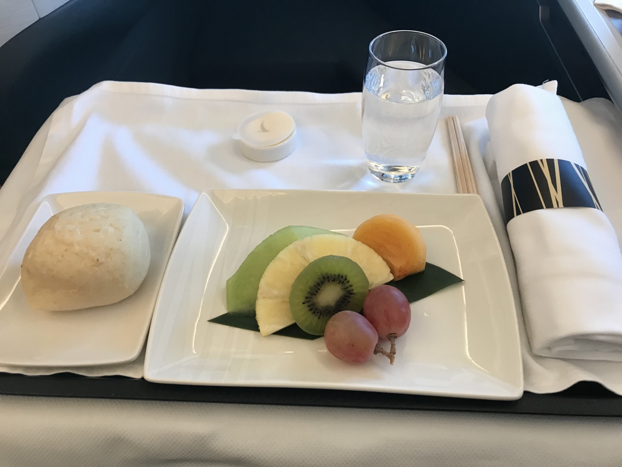 朝の便は、ウェルカムドリンクも含めて、機内ではアルコールがメニューにありませんでした。また、同様に毛布も席には備わっていません。いずれもお願いしたらもらえますが、少し残念に感じた点です。