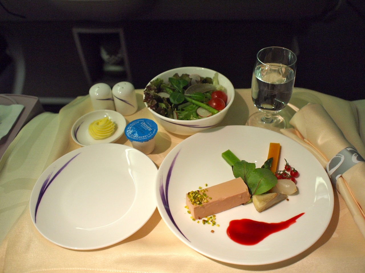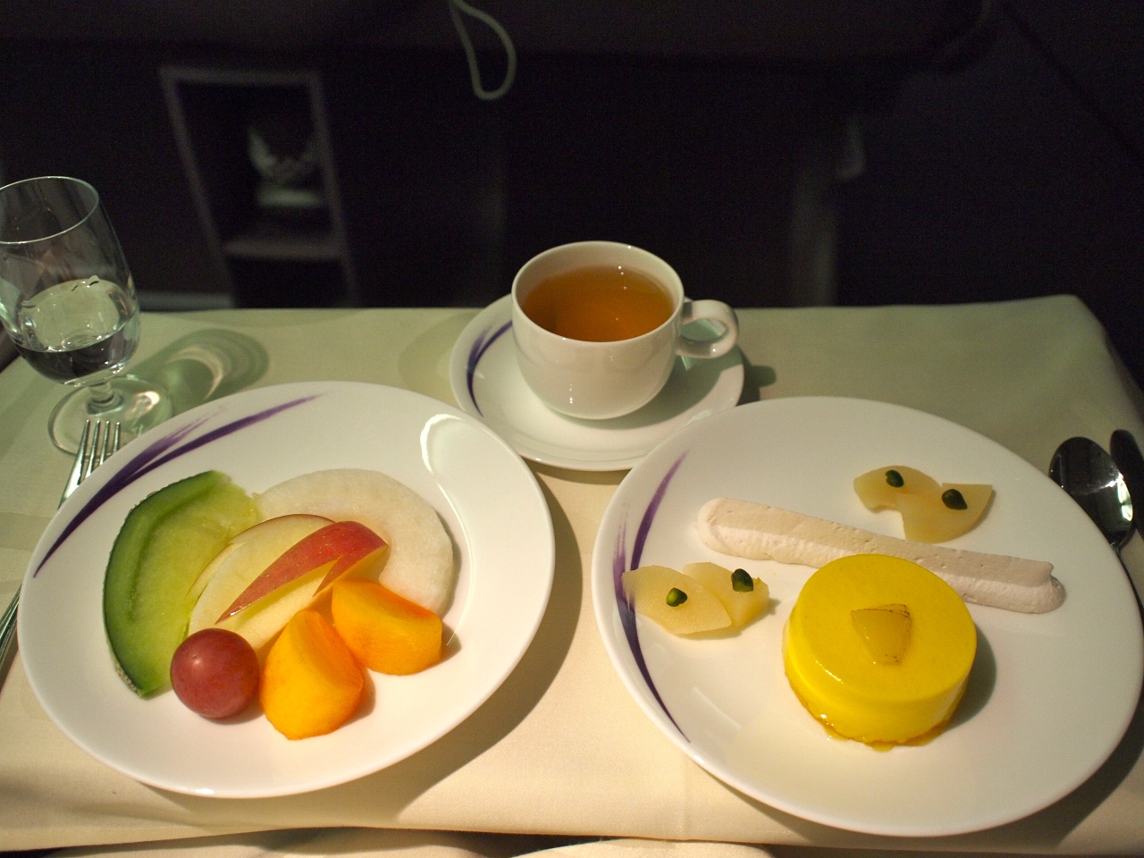 機内食も事前にメインディッシュの希望を聴いてくれ、食事ペースに合わせてサーブされます。