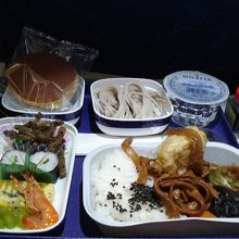3年前、江南周遊の格安ツアーで利用。機内食は和中のコラボでした。往きは問題なしでしたが、帰国時、飛行機が遅延。私は車利用で帰ることが出来ましたが、他の交通機関利用の方は航空会社手配のホテルに宿泊しました。乗る筈の飛行機に問題が起り直前に機種変更、操縦パイロットの手配が付かず遅延。上海空港で飲み物とお弁当も出ましたが事情説明までに時間が掛りました。1時間半位の遅延でしたが、成田に着いたら交通機関が全てストップしてる時間で、私も上海から駐車場に電話してお迎え時間変更しました。無事に帰って来たから良しとしましたが、予測できないこと起きると実感。帰りの飛行機でも機内食が出ましたが殆ど食べずに終わりました。