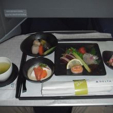 食事は行き帰りとも和食をお願いしましたが、日本発の
