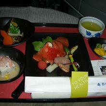 高齢になる両親との旅行のため、なるべく疲れないようにビジネシクラスにしました。座席は1-2-1の配列で私は窓際の1列席、両親は中央の2列席へ。シートはフルフラットになりゆっくり休むことが出来ました。また、エンタメ設備も充実しており、日本語で見れる映画等も数多くありました。しかし何と言っても一番驚いたのは機内食のレベルの高さです。日本食は大変人気があるようで、わざわざ予約までする人も多いそうです。それもそのはず、まるで料亭で食しているかのような内容で、見た目も味も一流といった感じでした。また、客室乗務員も日本人がおり不自由することもなく、快適な空の旅でした。