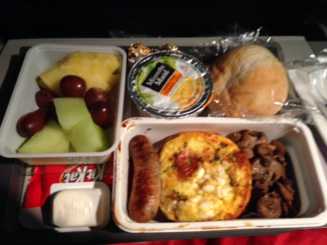途中の軽食は、サンドウィッチとフルーツがビニル袋に入って配られます。
