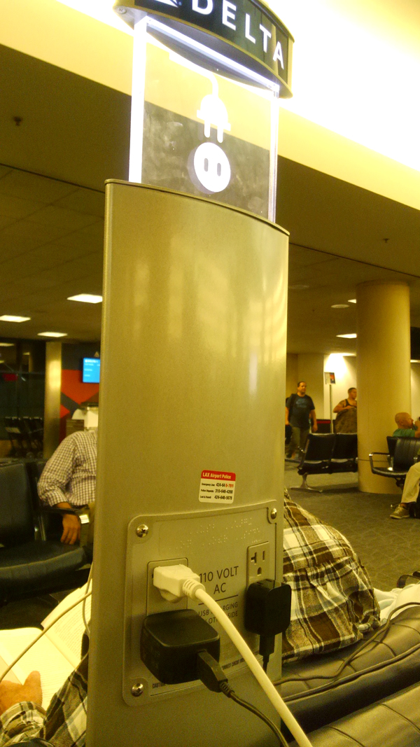 また、アメリカ国内の搭乗エリアは充電スポットが非常に充実していて、