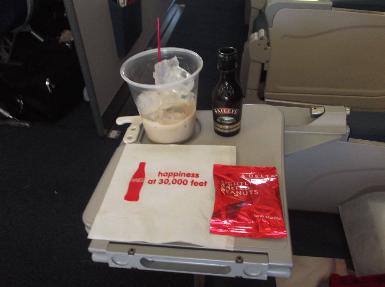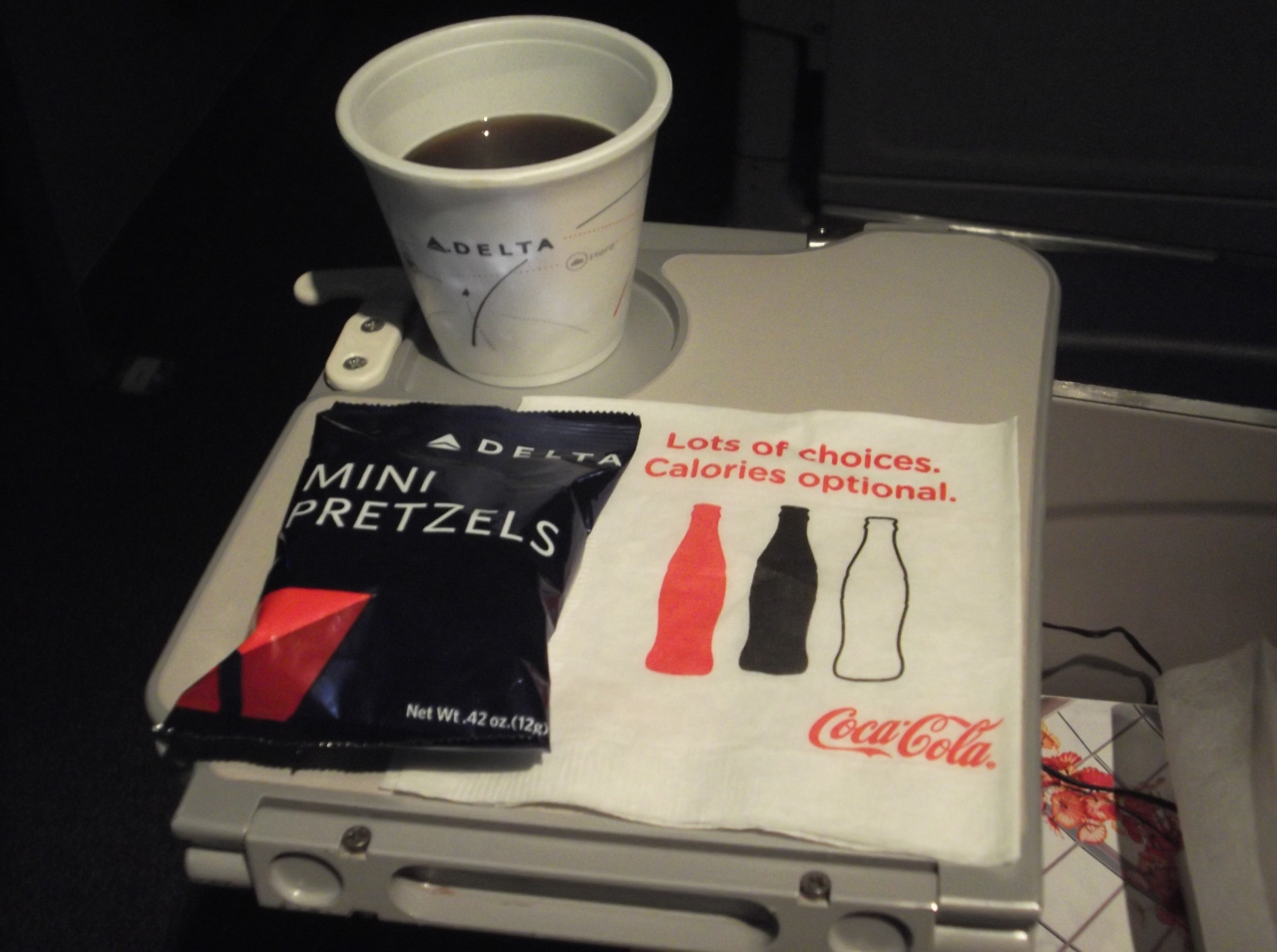 デルタのエコノミークラスはシートピッチが狭いので、いつものとおり足元の広いExit Row Seatをゲット。