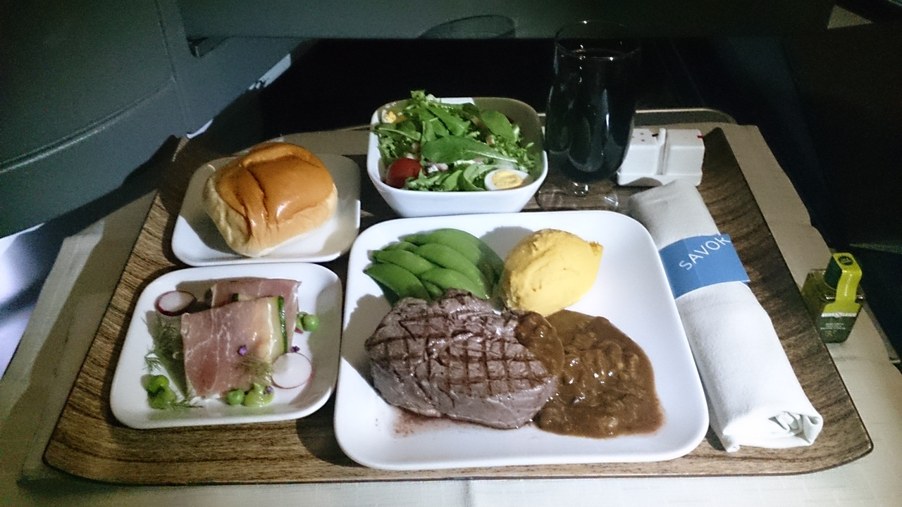 ビジネスの利用です。フルフラットで快適でした!食事のステーキはあまりおいしくなかったです。変に柔らかくて気持ち悪かったです。復路は和食にしましたが、和食の方がおいしかったです。キャビンアテンダントさんの対応はそんなによくないです。やっぱりアメリカ系の会社はさっぱりした対応なのかな。