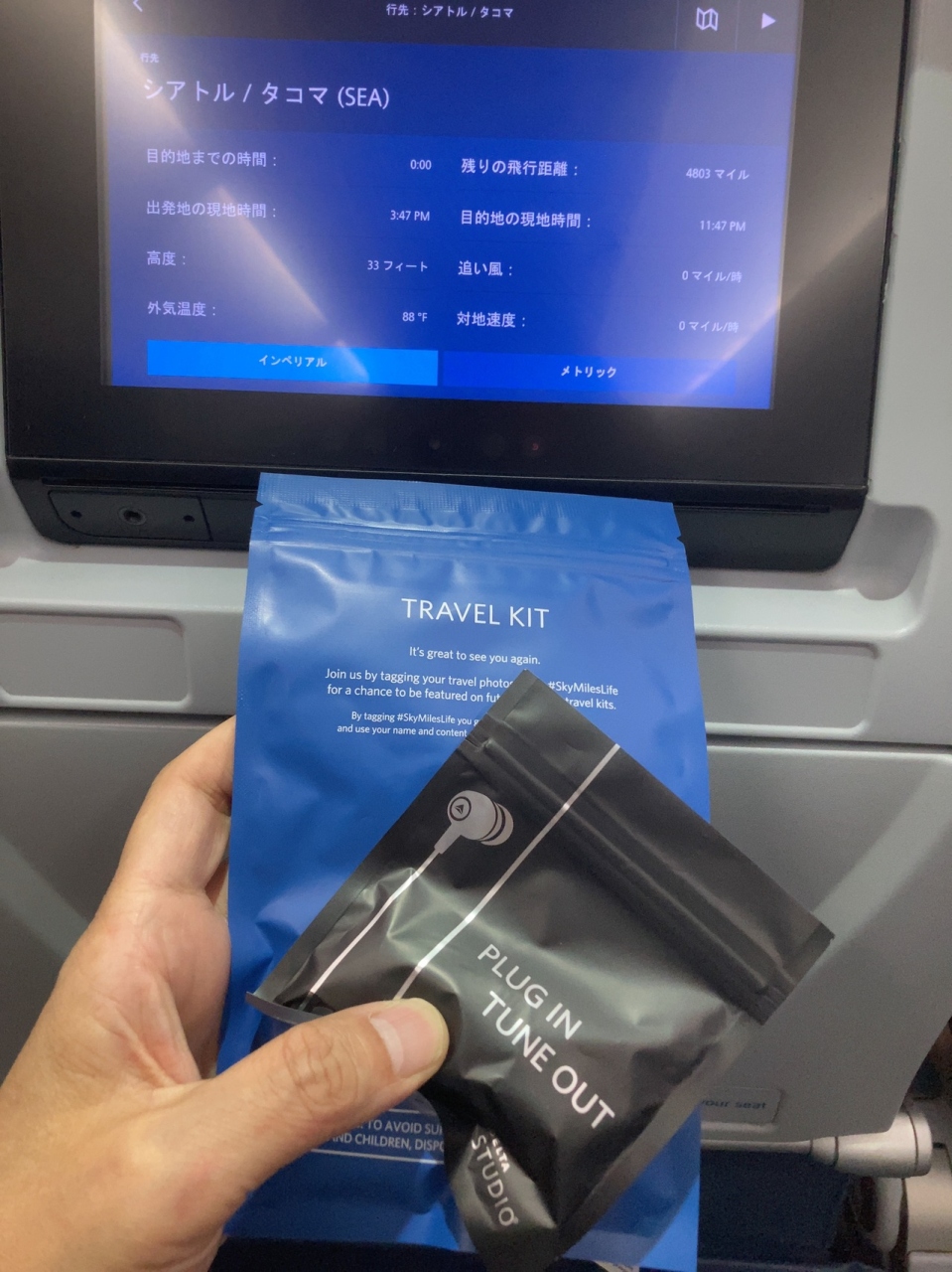 シアトル出張で久しぶりに利用しました。エコノミークラスでしたが機内用の簡素なスリッパを貰えたのは楽だった。その他、アイマスク、耳栓の入ったアメニティトラベルキットとイヤホンが配られます。また機内食は量的には日系エアラインに比べると多少物足りない量ですがカトラリーが木製。航空券は日系エアラインより安い分、食事、機内エンターテイメントなど簡素だけど安いのが一番という人には