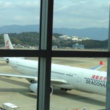 福岡空港から香港直行便に乗りました。予約はキャセイだったけど運航はドラゴン航空でした。